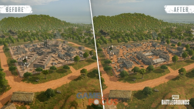 사녹 맵은 대표적인 핫드랍 구역인 부트캠프(Bootcamp)를 대폭 개선했다. ▲중앙 타워 오른쪽 이동 및 주변 건물 재배치, ▲중앙 타워 3층 난간 제거 및 박스 엄폐물 배치, ▲중앙 타워 2층 창문 크기 축소, ▲중앙 공간 주변 훈련장 추가를 통한 엄폐물 및 아이템 제공, ▲북쪽과 남쪽에 감시탑 각각 배치, ▲부트캠프 내 창고 4개 제거 및 북쪽 외부에 신규 창고 3개 추가 등의 업데이트를 통해 보다 탁 트인 공간에서 다양한 교전이 가능하게 됐다. 뿐만 아니라, 해안가 지역에 엄폐물을 추가하고 날씨효과의 밝기도 수정했다.
