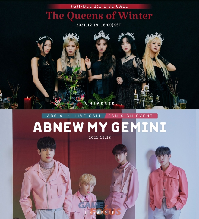 2일 엔씨소프트, 클렙 측은 글로벌 팬덤 플랫폼 유니버스(UNIVERSE)가 오는 12월 18일(토) 그룹 AB6IX의 라이브콜 및 대면 팬사인회 'ABNEW MY GEMINI'와 그룹 (여자)아이들의 라이브콜 'The Queens of Winter'를 각각 개최한다고 밝혔다.