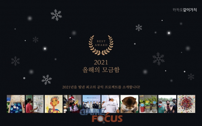 카카오는 2020년 11월 21일부터 2021년 11월 20일까지 1년간 '카카오같이가치'에서 모금이 완료된 공익 프로젝트를 대상으로 모금 스토리와 후기, 원활한 소통, 프로젝트 수행 충실성 등을 기준으로 파트너 기관과 심사를 진행했다. 그 결과 ▲사단법인 한국해비타트의 '독립유공자의 희생과 헌신, 잊지 않겠습니다', ▲유니세프한국위원회의 '폭력으로부터 안전한 세상, 함께 만들어요', ▲사회적협동조합 한강의 '수달이 돌아온 한강을 위하여' 등 다양한 테마의 프로젝트 10개가 '올해의 모금함'으로 선정됐다.