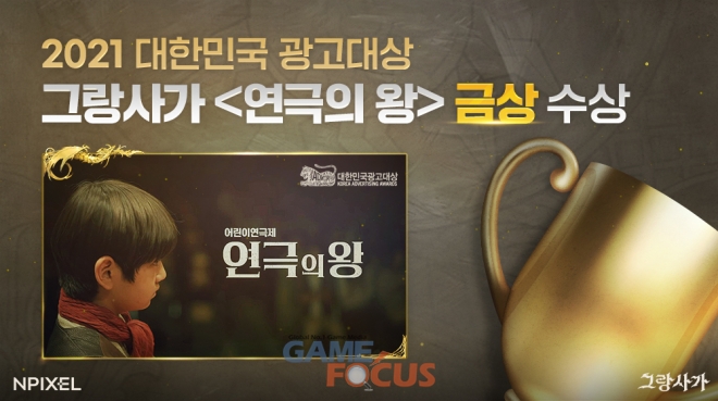 엔픽셀(공동대표 배봉건, 정현호)은 자사가 개발하고 서비스하는 멀티플랫폼 MMORPG '그랑사가'에서 출시에 맞춰 진행한 광고 캠페인 '연극의 왕'이 한국 광고업계 최고 권위 시상식 '2021 대한민국광고대상'에서 디지털영상 부문 금상을 수상했다고 3일 밝혔다.