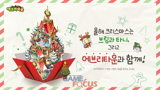 풍성한 업데이트와 더불어 크리스마스를 기념한 다양한 이벤트도 준비되어 있다. 우선, '에브리타운'에 이용자에게 카카오톡에서 사용가능한 이모티콘을 100% 증정하는 '출석체크 이벤트'를 실시한다. 지난 8월 브링과 타니 브랜드 이모티콘을 진행했을 당시 폭발적인 인기로 인해 도중에 수량을 추가했음에도 불구하고 3일만에 전량 소진된 바 있어, 이번에는 이용자 전원이 혜택을 받을 수 있도록 무제한으로 준비했다. 수령을 희망하는 이용자는 먼저 카카오게임에서 에브리타운 이모티콘 받기 누른 후, 22년 1월 5일까지 게임에 접속해 출석 체크만 완료하면 된다.