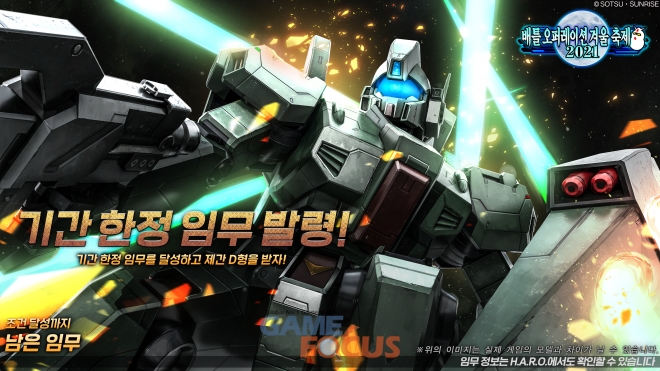 반다이남코 엔터테인먼트 코리아(대표 제랄드 누난)는 PlayStation5, PlayStation4 플랫폼 온라인 전용 게임 '기동전사 건담 배틀 오퍼레이션 2'의 '배틀 오퍼레이션 겨울 축제 2021' 개최 소식을 발표했다.