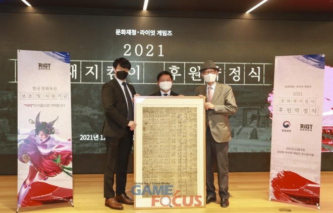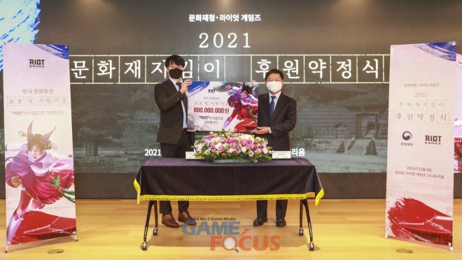 라이엇 게임즈는 지난 9일 삼성동에 위치한 본사 오디토리움에서 문화재청과의 ‘문화재지킴이’ 후원 약정을 통해 8억 원의 추가 기부금을 후원했다.