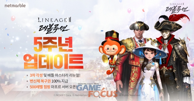 넷마블(대표 권영식, 이승원)이 모바일 MMORPG '리니지2 레볼루션'(개발사 넷마블네오)의 서비스 5주년을 맞아 ▲3차 각성 ▲신규 영지 '혼돈의 디온' ▲신규 서버 마프르를 추가하는 대규모 업데이트를 실시했다.