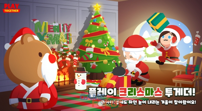 ‘플레이투게더’는 크리스마스 시즌 테마 업데이트를 기념하는 이벤트도 준비했다. 12월 13일부터 24일까지 네이버 카페, 페이스북, 디스코드, 트위터 등 각 커뮤니티마다 공개되는 크리스마스 쿠폰을 통해 스페셜 코스튬을 획득할 수 있다. 이외에도 올해 남은 기간 동안 공식 커뮤니티를 통해 다양한 크리스마스와 연말 이벤트를 진행한다는 계획이다.