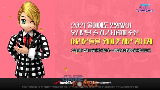 한빛소프트 관계자는 "올 한해 오디션을 사랑해주신 유저분들께 조금이나마 보답하고자 감사제 이벤트를 마련했으며, 세상을 즐겁게 만들자는 당사의 기업 비전을 바탕으로 힘든 상황을 함께 극복하자는 의미에서 기부 이벤트도 진행한다"고 전했다.