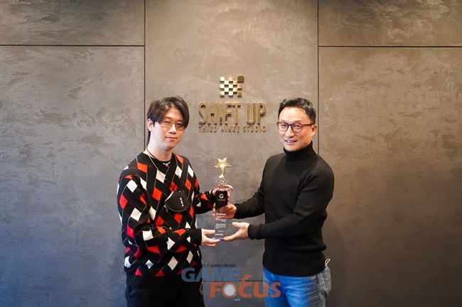 시프트업 사옥에서 진행된 수여식에는 한국게임미디어협회 이택수 회장과 한국게임기자클럽 곽경배 간사, 시프트업 김형태 대표가 참석했다.