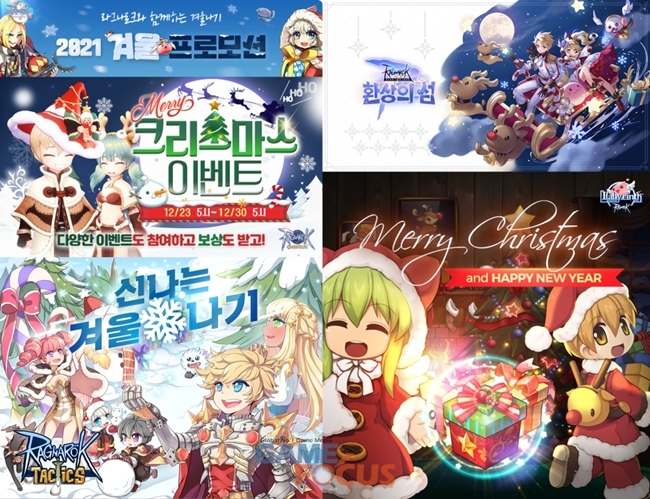 모바일 SRPG '라그나로크 택틱스'에서는 12월 21일 점검 후부터 2022년 1월 11일 점검 전까지 겨울 이벤트 4종을 진행한다. 이벤트 기간 동안 모험 콘텐츠 클리어 시 축제 코인, 눈꽃 결정, 몬스터 티켓 조각을 일정 확률로 획득할 수 있으며 눈꽃 결정 교환소에서 24급 장비 상자 등 다양한 아이템으로 교환 가능하다. 이외에도 12월 21일부터 26일까지 '스킨 룰렛 이벤트', 12월 24일부터 26일까지는 '모험 드랍 3배 이벤트'도 진행한다.
