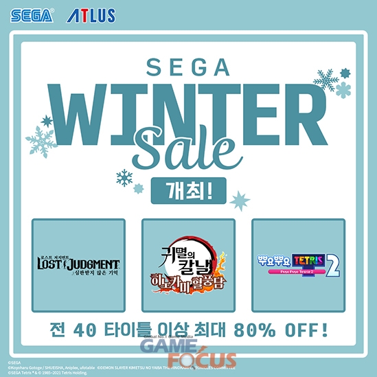 주식회사 세가는 2021년 12월 22일(수)부터 2022년 1월 7일(금)까지 기간 한정으로 PlayStation Store에서 발매 중인 일부 PlayStation4/PlayStation5 플랫폼 타이틀을 특별 가격으로 판매하는 'SEGA Winter Sale'을 실시한다.