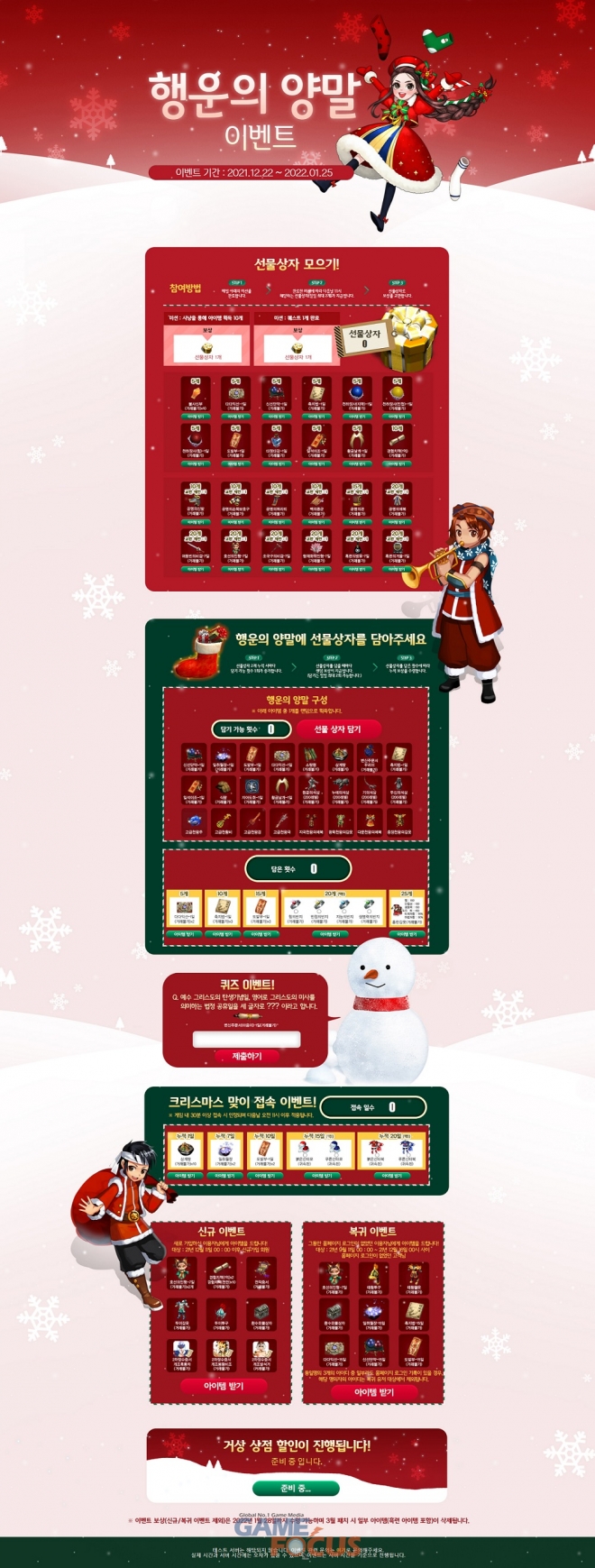 에이케이인터렉티브 측은 이번 대형 업데이트를 기념하고, 다가오는 크리스마스를 기념한 '행운의 양말 이벤트'를 12월 22일부터 2022년 1월 25일까지 진행한다. 일일 미션을 수행해 선물상자를 모으면 광목천왕의 갑옷, 고급 천왕극 등 다양한 아이템으로 교환이 가능하며, 매일 접속을 하면 산타클로스로 변신 가능한 전용 코스튬 아이템을 선물한다.