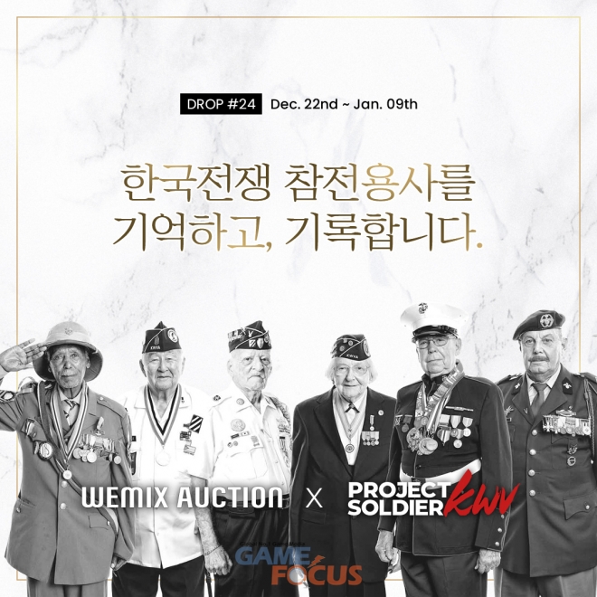 (주)위메이드(대표 장현국)가 위믹스 NFT 옥션을 통해 라미와 헤디 작가의 '프로젝트 솔져: 한국전쟁 참전용사를 찾아서' NFT를 소개하고 지원하기 위한 이벤트를 연다.