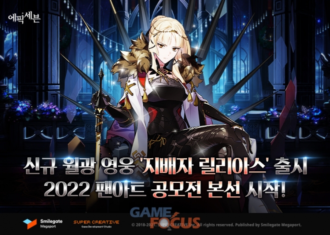 스마일게이트 메가포트(대표 장인아)가 자사에서 서비스하고 슈퍼크리에이티브(김형석, 강기현 공동대표)가 개발한 글로벌 히트 모바일 RPG '에픽세븐'의 크리스마스 특별 서브 스토리와 신규 월광 영웅 '지배자 릴리아스'를 업데이트하고 2022년 팬아트 공모전 본선을 진행하는 등 '에픽세븐' 팬들을 위한 풍성한 연말 파티를 시작한다.