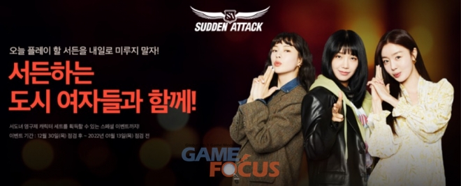 또, TVING 화제 드라마 '술꾼도시여자들'에서 매력적인 캐릭터로 주목받고 있는 이선빈, 한선화, 정은지를 '서든하는 도시 여자(서도녀)' 콘셉트의 신규 캐릭터로 출시한다. 이들 영구제 캐릭터는 점프 사운드 묵음 기능을 제공하며, 캐릭터 세트 효과와 감정 표현 2종을 갖는다.