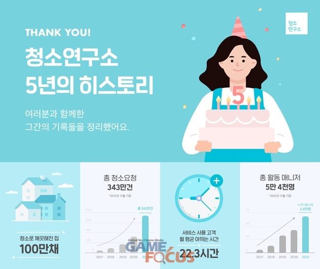 생활연구소(대표이사 연현주)가 운영하는 홈클리닝 서비스 '청소연구소'가 서비스 5주년을 맞이해 그간의 성과를 발표하고 각 분야 우수 매니저 시상 및 다양한 고객 프로모션을 실시한다.