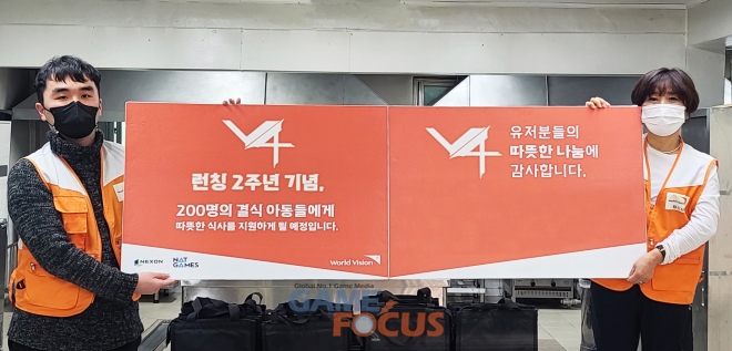 2주년 기부 이벤트는 ‘V4’ 게임 콘텐츠와 연계해 즐겁게 기부할 수 있는 문화를 조성한 점에서 호응을 얻었다. 기부금은 월드비전을 통해 200명의 결식 아동들을 위한 따뜻한 식사 지원에 쓰일 예정이다.
