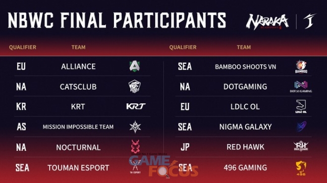 나라카 월드 챔피언십 파이널은 2022년 1월 13일부터 16일까지 중국 청두에서 진행되며, 한국지역에서는 KRT 팀이 대표로 참가한다. 코로나19로 인해 중국 입국이 어려운 외국 선수들은 싱가포르에서 원격으로 경기를 치르게 된다. 13일(목) ‘중국 예선 결승전’부터 15일(토)까지 ‘그룹 스테이지’를 진행, 16일(일)에는 결승전을 진행하며 대진표는 추후 공개될 예정이다.