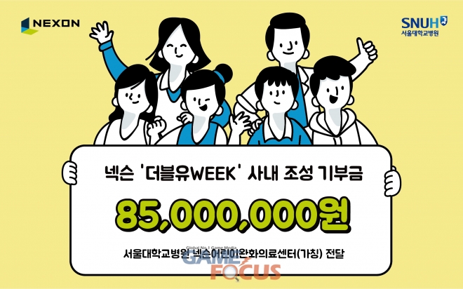 넥슨(대표 이정헌)이 지난 연말 진행한 사내 기부 이벤트 '더블유WEEK'를 통해 모금된 기부금 총 8,500만 원을 서울대학교병원(원장 김연수)에 기부했다.