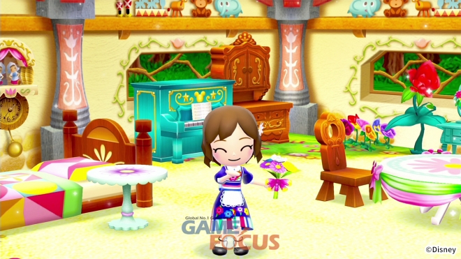디즈니 디자인의 의상, 가구, 요리는 3,000 종류 이상! 재료를 모아 마음껏 만들 수 있다.
