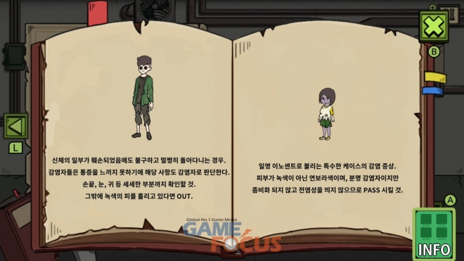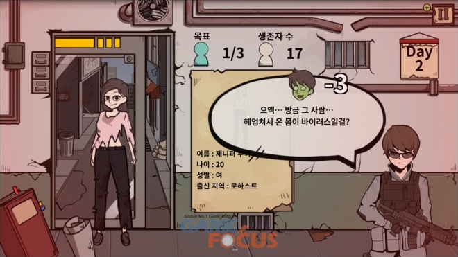 플레이어는 민간 대피소를 지키기 위해 대피소 게이트 앞에 서 있는 사람들을 상대로 바이러스에 감염된 좀비인지, 평범한 시민인지를 구분하여 심사관으로서 신중한 결단을 통해 대피소 출입 여부를 결정해야 한다.