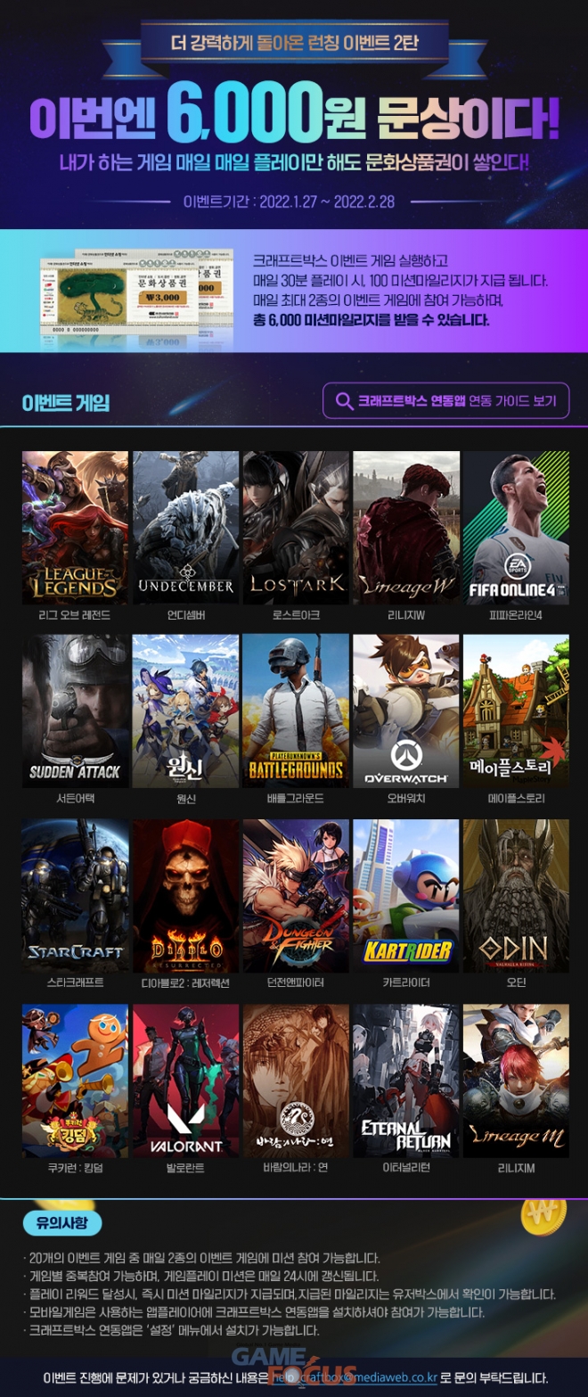 미디어웹(대표 김종인)이 PC기반의 크로스플레이 게임 플랫폼인 '개인PC용 크래프트박스 런처' 게임플레이 2차 이벤트를 2월 28일까지 진행한다고 밝혔다.