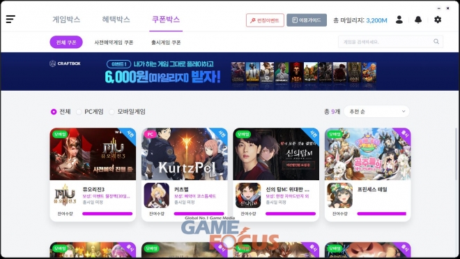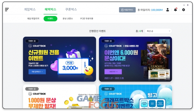 개인PC용 크래프트박스는 온라인, 모바일, 크로스플레이 게임을 별도 설치 과정없이 바로 플레이 할 수 있도록 지원하는 국내 최초의 크로스플레이 게임 플랫폼으로, 게임 런처 기능과 함께 게임을 플레이할 때마다 마일리지를 모아 문화상품권과 PC방 이용권, 게임아이템 등을 자유롭게 교환할 수 있다는 것이 큰 장점이다.