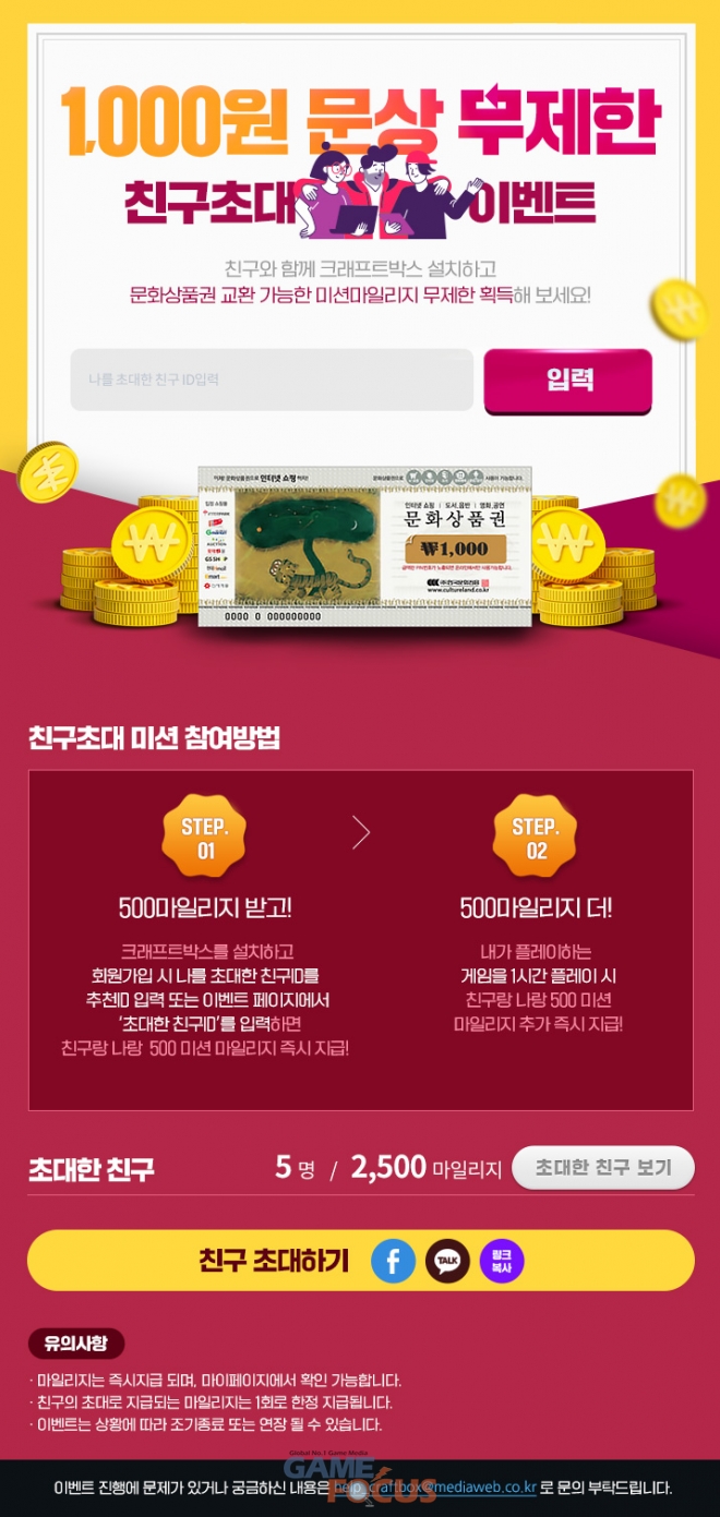 이와 함께 출석체크 등 튜토리얼 빙고 이벤트를 통해 문화상품권을 지급하며, 친구 초대 이벤트를 통해서도 무제한으로 문화상품권을 교환할 수 있는 마일리지를 받을 수 있다.