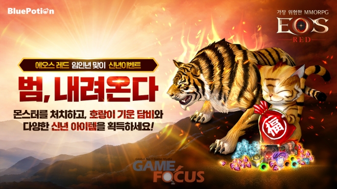 블루포션게임즈(정 재목 대표)는 직접 개발하고 서비스하는 모바일 정통 MMORPG '에오스 레드'가 임인년 설날 이벤트와 유저 편의성 업데이트를 27일 진행했다고 밝혔다.