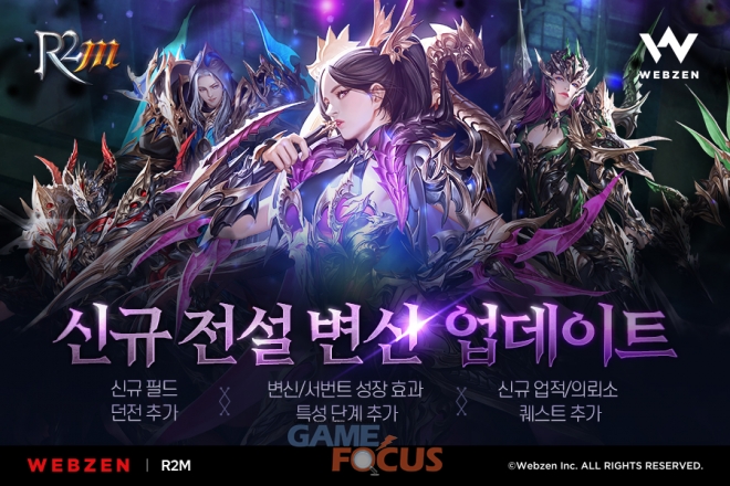 웹젠은 신규 전설 변신 4종, 초월 변신 영혼석, 변신/서번트 성장 효과를 추가하고 희귀 스킬 강화 레벨을 7까지 확장했다. 신규 성장/강화 효과를 통해 'R2M' 회원들은 캐릭터를 더욱 강하게 육성할 수 있다.