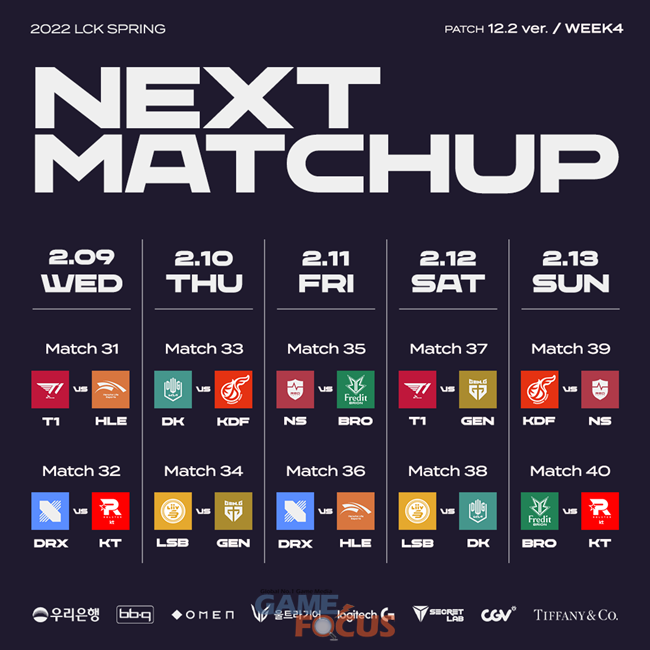 '리그 오브 레전드(LoL)' e스포츠의 한국 프로 리그를 주최하는 리그 오브 레전드 챔피언스 코리아(대표 오상헌, 이하 'LCK')가 9일부터 13일까지 서울 종로구 그랑서울에 위치한 LCK 아레나에서 진행되는 2022 LCK 스프링 4주차에서 1, 2위를 달리고 있는 T1과 젠지가 맞붙는다고 밝혔다.