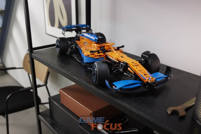 '레고 테크닉 맥라렌 포뮬러 원 레이스카'는 충격을 흡수하는 서스펜션, 주행 안정성을 높이는 디퍼렌셜 록 등 실제 레이스카 못지않게 사실적인 요소들을 갖췄다. 피스톤이 작동하는 V6 터보 엔진과 조종석의 조향 휠을 이용해 실감나는 트랙 주행을 연출할 수 있다.