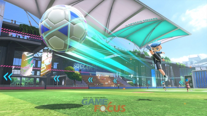 커다란 볼로 다이내믹하게 플레이하는 축구는 시합 중에 슛, 다이빙 헤드 등을 Joy-Con으로 즐길 수 있으며, 동봉된 레그 스트랩에 Joy-Con을 장착하면, 차는 액션을 통해 직감적인 조작으로 슛 대결을 할 수도 있다.
