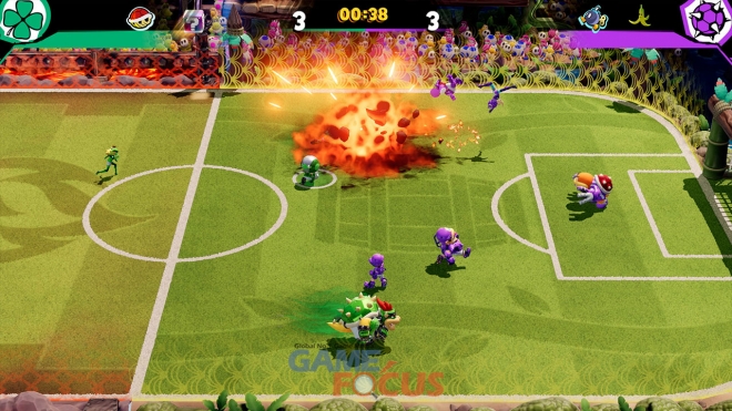 '마리오 스트라이커즈 배틀 리그'에서, '격투기'×'축구'로 규칙이 없는 새로운 스포츠 '스트라이크'가 개막한다. 이번에 마리오 일행은 5대 5로 대결하는 새로운 스포츠 '스트라이크'에 도전하게 된다.