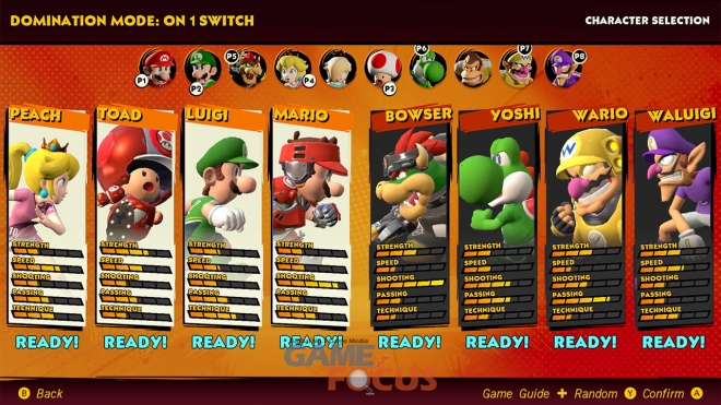 1대의 본체로 각 팀당 4명씩, 최대 8명까지 대전이 가능하다. Joy-Con 가로 잡기로 나눔 플레이에도 대응한다. 온라인 플레이에서는 전 세계의 상대와 랜덤으로 대전하는 프리 배틀에 더해, 최대 20명까지 등록할 수 있는 클럽 팀을 만들어 클럽끼리 대전하는 '스트라이커즈 클럽' 모드도 즐길 수 있다.