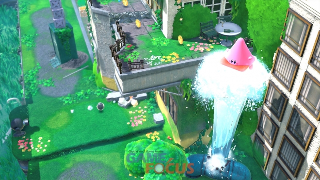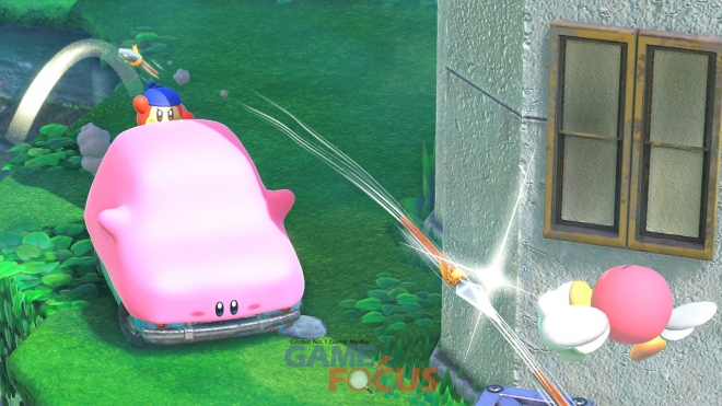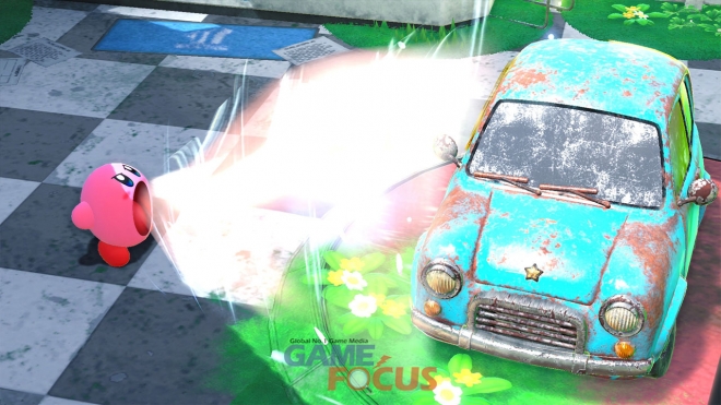 이번 작품에서는 새로운 능력 '머금기 변형'이 등장한다. 자동차를 머금고 필드 위를 달리거나, 자판기를 머금고 음료수 캔으로 공격하거나, 삼각콘을 머금고 수도관을 파열시키는 등, 머금은 아이템에 따라 다양한 액션을 구사할 수 있어서, 카피 능력과는 다른 느낌의 액션으로 탐색을 즐길 수 있다.