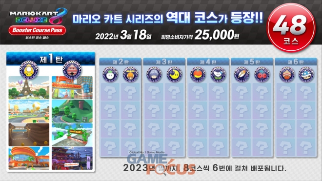 제1탄으로는 'Wii 코코넛 몰', '64 초코 마운틴', '도쿄 블러' 등, 8개의 코스가 3월 18일(금)부터 배포된다.