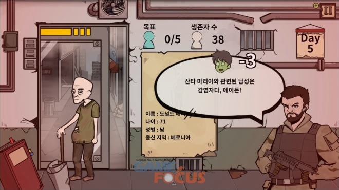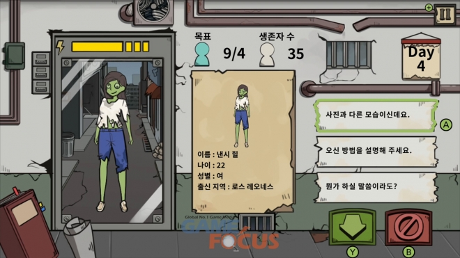 본 작품은 플레이어가 민간 대피소의 심사관이 되어, 대피소 게이트로 찾아오는 시민들을 대상으로 관찰 및 여러 질문을 통해 좀비 바이러스 감염 여부를 유추해 통과시킬지, 거절할지 결정해야 한다. 또한, 뉴스를 통해 좀비를 판별할 수 있는 정보나 신문에 실린 내용을 주의 깊게 점검해, 생존자를 놓치지 않도록 신중한 결단을 내려야 하는 게임이다.