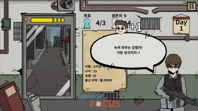 에이든은 과연 좀비를 배제하고, 대피소의 안전을 지켜낼 수 있을 것인가.