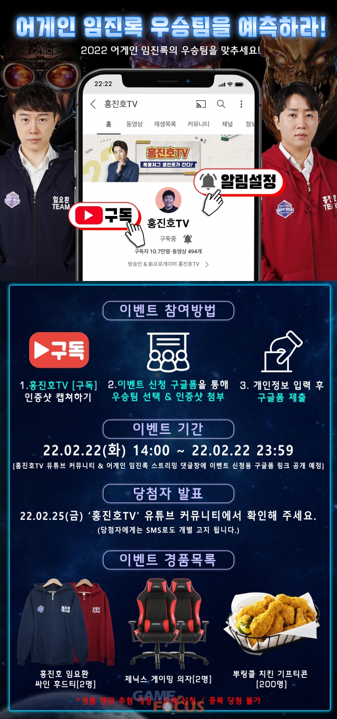 '스타크래프트' e스포츠 리그 최대 라이벌 임요환과 홍진호가 오는 22일 빅피처인터렉티브 레드 스튜디오에서 이벤트전 '어게인 임진록'을 개최한다.
