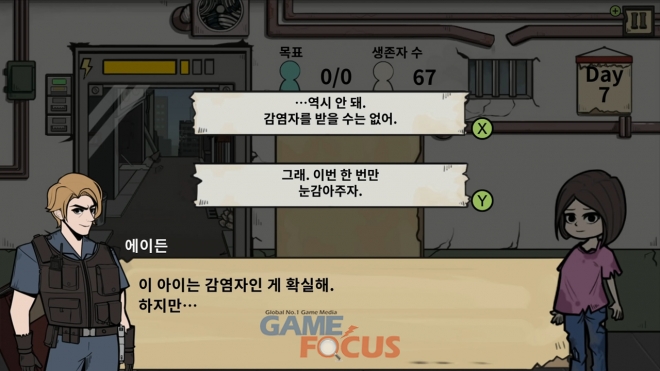좀비 바이러스 감염 여부를 확인할 수 있는 심사 자료는 입소를 결정하는 중요한 사항으로, 주의 깊게 자료를 점검해 생존자를 놓치지 않도록 신중한 결단을 내려야 한다.