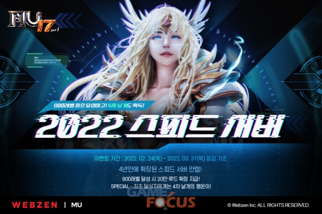 웹젠이 어제(24일) '뮤 온라인'의 '2022 스피드 서버'를 오픈하고, 4년 만에 최고 레벨을 800레벨로 확장했다. 이를 기념하여 다양한 '미션/게릴라/랭킹 이벤트'를 준비했다.