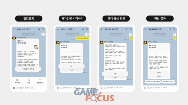 카카오(공동대표 여민수, 조수용)가 코로나19의 대규모 확산에 따라 이용자들이 신속하게 대응 정보를 확인할 수 있도록 카카오톡에 '코로나19 자가진단 챗봇'을 구축했다.