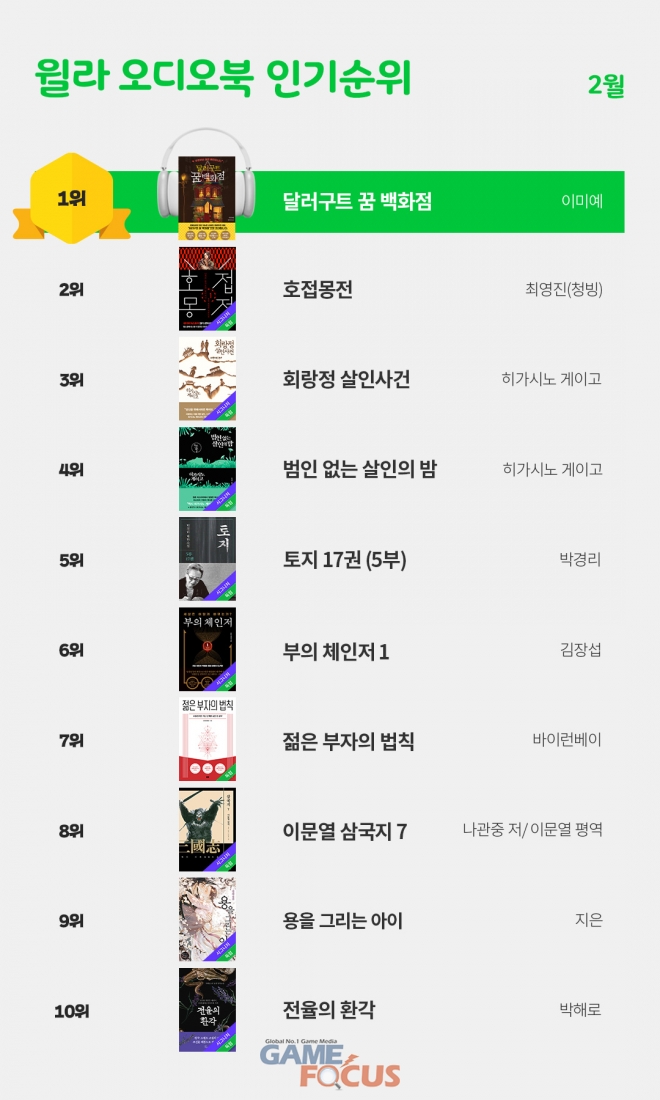 윌라가 2월 오디오북 베스트 순위를 발표했다.
