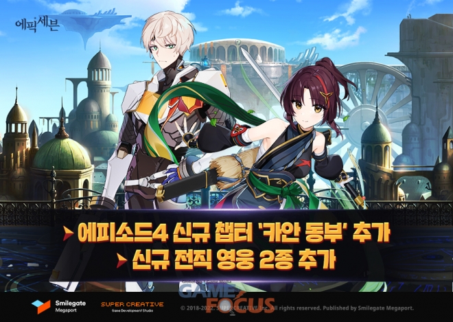 스마일게이트 메가포트(대표 장인아)는 7일, 자사가 서비스하고 슈퍼크리에이티브(김형석, 강기현 공동대표)가 개발한 모바일 RPG ‘에픽세븐’의 에피소드4의 네번째 신규 챕터 ‘카안 동부’를 추가하고 신규 전직 영웅 2종을 선보인다고 밝혔다.