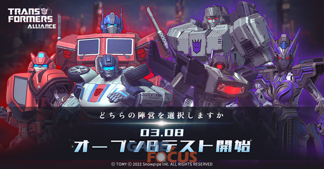 'TRANSFORMERS ALLIANCE' 일본 OBT는 3월 22일 24시까지 2주간 진행되며 기간 동안 게임에 접속한 모든 유저에게는 매일마다 에너존, 메탈 등의 재화가 지급되며, 공식 트위터를 통해 진행되는 다양한 이벤트도 준비되어 있다.