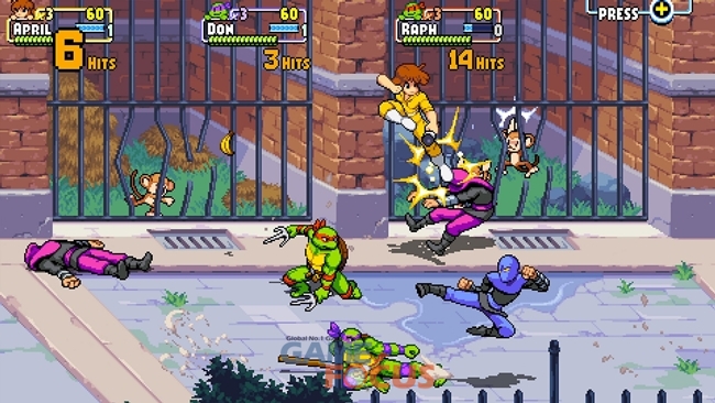 -등껍질을 가진 영웅들: 화려한 픽셀 아트로 구성된 그래픽을 바탕으로 자신이 좋아하는 거북이를 선택하여 고유의 기술을 사용하여 적들을 물리쳐라. 숨막히는 액션과 다채로운 연속기, 닌자의 놀라운 능력으로 가득 찬 전투를 경험하라.