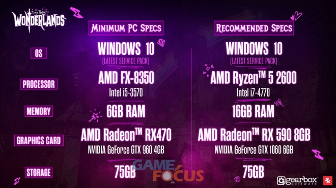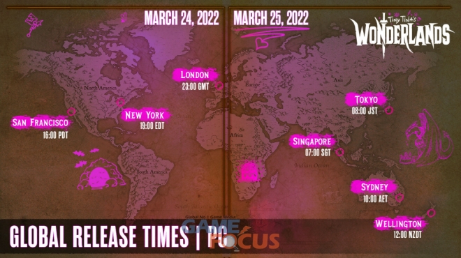2K와 기어박스가 2022년 3월 25일 타이니 티나의 원더랜드의 출시를 앞두고, 크로스플레이 지원 및 분할 스크린 옵션, PC 사양과 전 세계 출시일에 대한 세부사항을 공개했다.