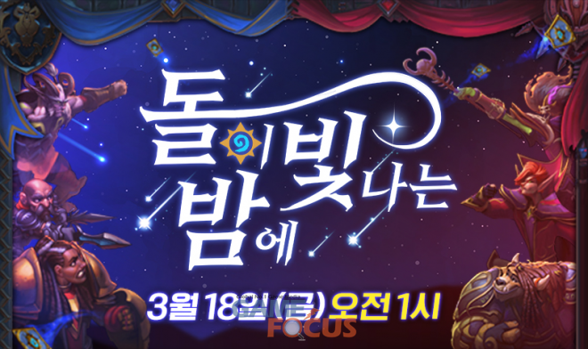 내일로 다가온 하스스톤 올해 첫 확장팩 발표를 기념해 '돌이 빛나는 밤에' 특별 방송이 내일 3월 18일 새벽 1시부터(이하 한국 시간 기준) 하스스톤 공식 유튜브 채널 및 공식 트위치 채널에서 실시간 중계된다.