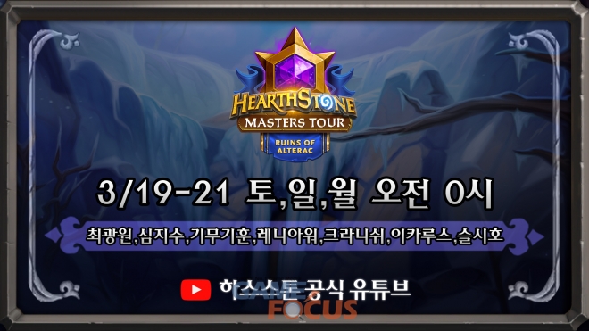 올해 하스스톤 마스터즈 투어 두 번째 대회인 마스터즈 투어 '알터랙 폐허(Masters Tour Ruins of Alterac)'가 이번 주말 사흘 동안 온라인으로 개최, 유튜브에서 독점 중계된다.