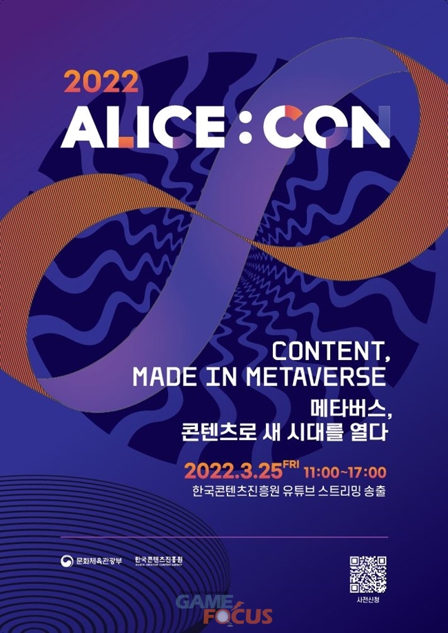 문화체육관광부(장관 황희)와 한국콘텐츠진흥원(원장 조현래, 이하 콘진원)이 메타버스 콘텐츠 및 생태계의 주요 트렌드와 향후 변화를 조망하기 위한 '2022 앨리스콘(ALL Immersive Content create new Experiences Conference 2022, 이하 앨리스콘)'을 25일 온라인 개최한다.