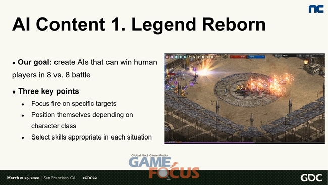 엔씨(NC)는 인공지능 서밋에 참여해 MMORPG(다중접속역할수행게임)에 적용한 AI 강화학습 모델을 발표했다. 엔씨(NC)가 연구한 AI 강화학습 모델은 PC 온라인 게임 '리니지'에 실제로 도입, 운영한 콘텐츠다. 수십 명 단위의 AI가 전투를 수행하는 콘텐츠를 상용화 수준까지 구현한 사례는 세계 최초다.